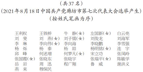 中国共产党廊坊市第七届纪律检查委员会委员名单