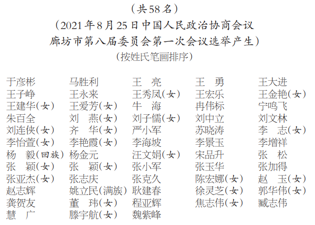 中国人民政治协商会议 廊坊市第八届委员会常务委员名单