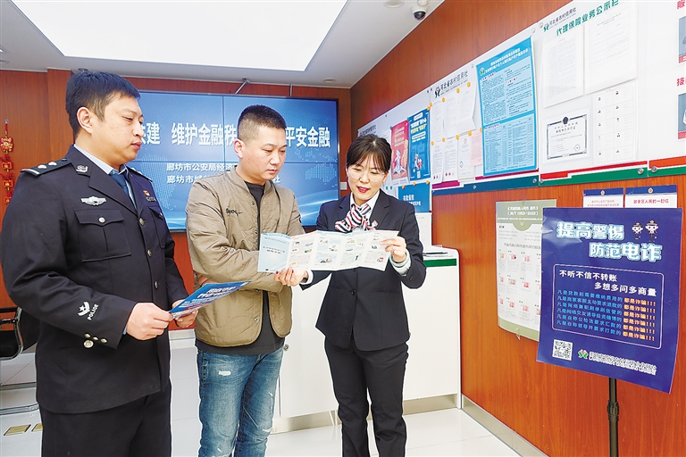 廊坊城郊联社工作人员与市公安局经侦支队民警向市民宣传防范金融诈骗知识。(资料片) 记者 陈童 摄