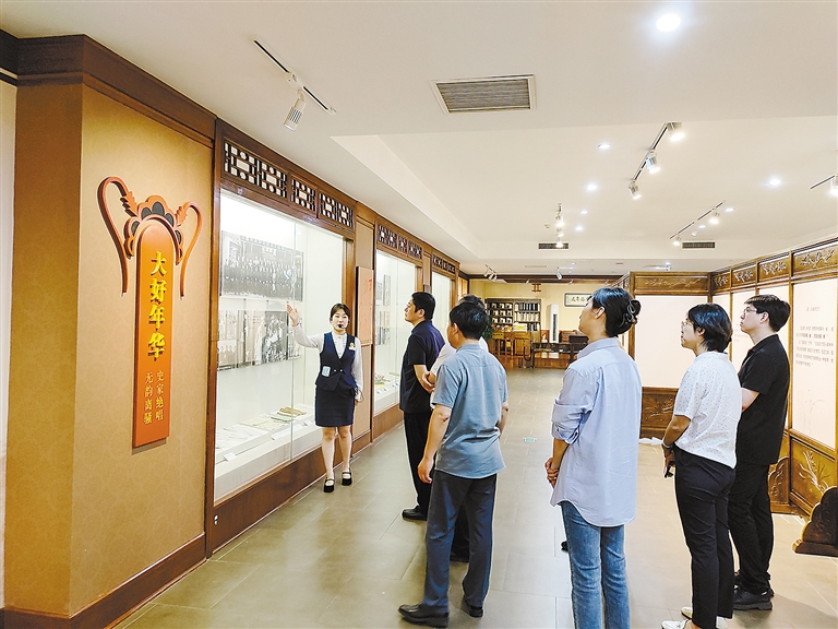 游客在李少春纪念馆参观。