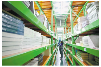 永清县依托毗邻京津的区位优势,精准承接北京外迁图书企业,逐步打造集印刷装订、零售批发、图书馆配、电商销售于一体的全产业链图书产业集群。在京联现代图书产业园5万平方米的图书仓储物流中心,有各类图书20多万种,平均每天有8至10万册图书从这里发往全国各地。 记者 贾珺 摄