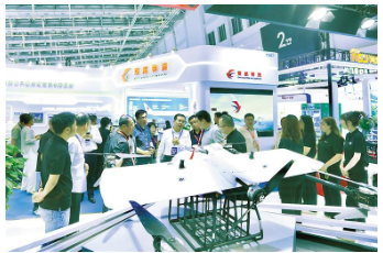 图为6月17日,在降低社会物流成本场景展馆内,工作人员向嘉宾介绍多旋翼物流无人机。本报记者 董旭旭 摄
