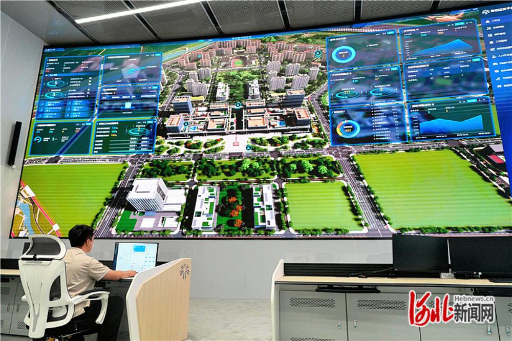 9月2日,在临空经济区(廊坊)数智城市运营中心,工作人员通过监控大屏实时查看城市运转情况。 河北日报记者王伟摄