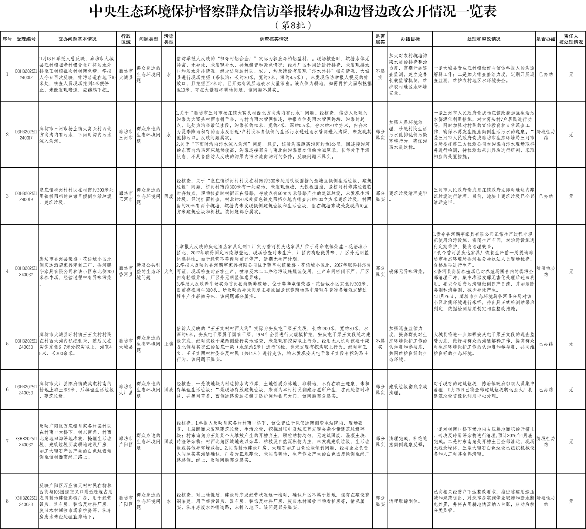附件:《中央生态环境保护督察群众信访举报转办和边督边改公开情况一览表(第8批)》