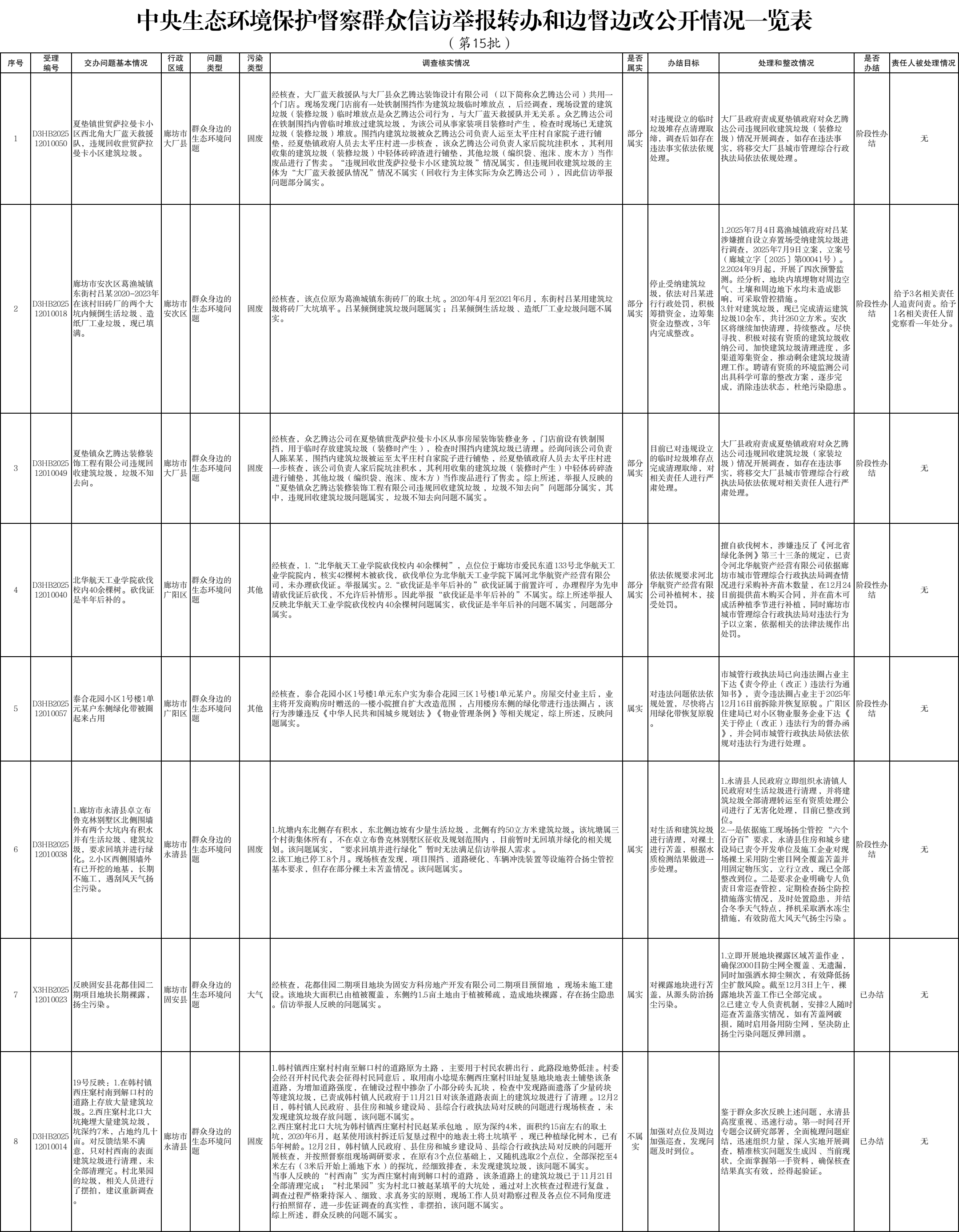 附件:《中央生态环境保护督察群众信访举报转办和边督边改公开情况一览表(第15批)》