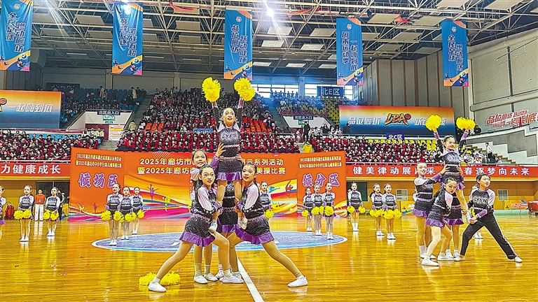 近日,2025年廊坊市教体融合成果展示系列活动暨2025年中小学生(幼儿)健美操比赛在市体育馆举行,来自全市各县(市、区)的1500余名师生齐聚赛场,以活力舞姿诠释体育魅力,用协作拼搏展现教体融合丰硕成果。