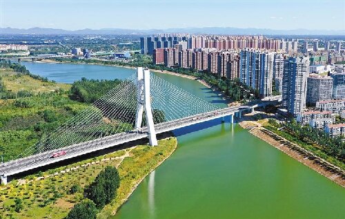 燕潮大桥跨潮白河联通北京通州与河北廊坊。