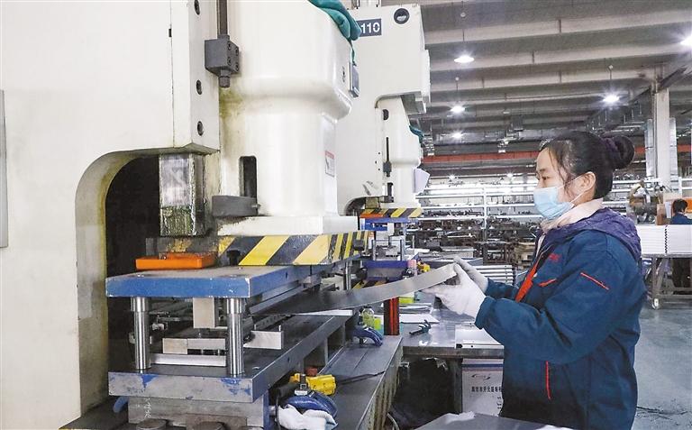 在河北富都华创家具制造有限公司,工人正在加工钣金。 通讯员 马梓艳 摄