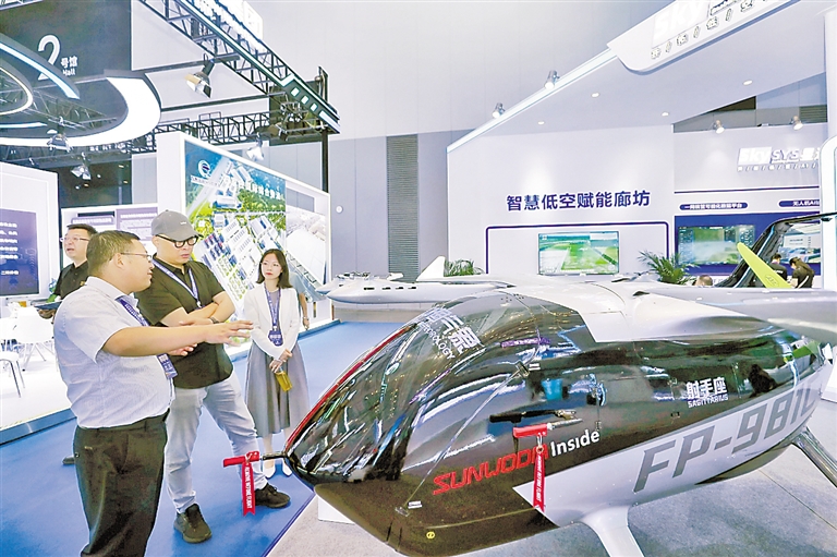 2025年廊坊经洽会上,星逻智能展区工作人员向与会客商介绍多功能垂起复合翼无人运输机功能。记者 陈童 摄