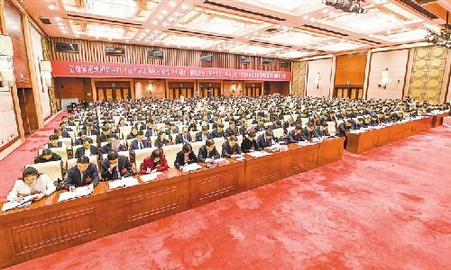 2月5日,廊坊市第八届人民代表大会第八次会议开幕。这是会议现场。