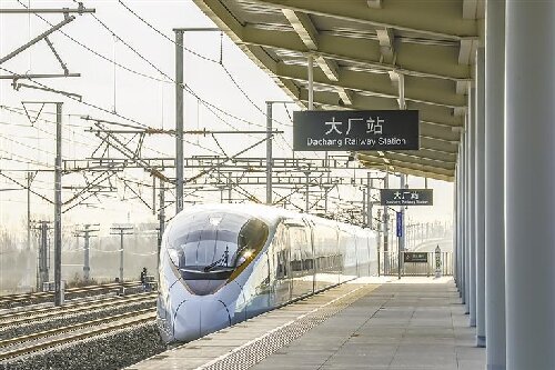 列车驶入京唐城际铁路大厂站。