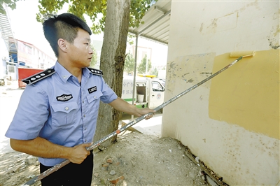 6月16日上午,在市二十三小附近,市综合执法局工作人员操作高压清洗车,手持高压水枪,伴随机器的轰鸣声,只见高压水枪喷出的高速水流如一把“手术刀”,几分钟的时间,原来布满墙面的非法小广告就被清理得一干二净。